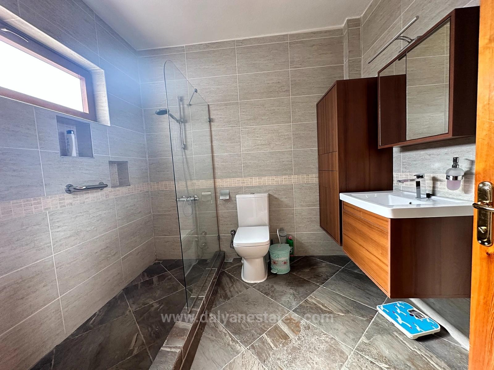 data-end="875">In dieser gepflegten Anlage mit insgesamt sieben Villen steht eine Villa zum Verkauf. Die Anlage ist als Wohnanlage organisiert. Vor dem Gebäude befindet sich ein 40 m² großer Gemeinschaftspool. Der Poolbereich ist von Gärten mit tropischen Pflanzen umgeben, die jeder Villa eine großzügige, grüne und einladende Atmosphäre verleihen. Die kompakte und dennoch durchdachte Grundstücksstruktur bietet ein ausgewogenes Verhältnis zwischen Gemeinschaftsgefühl und Privatsphäre. Beim Betreten der Villa empfängt Sie eine helle und einladende Eingangshalle. Von hier aus gelangen Sie fließend in den offenen Wohnbereich mit angrenzender, kürzlich renovierter Küche. Die sonnige Terrasse lädt zum Verweilen, Essen im Freien, Entspannen oder gemütlichen Gesprächen ein und verbindet so den Außenbereich mit dem Wohnen. Der Wohnbereich ist in zwei separate Bereiche unterteilt: einen Ess- und Arbeitsbereich auf der einen Seite und ein geräumiges, komfortables Wohnzimmer auf der anderen. Ein Gäste-WC befindet sich ebenfalls im Erdgeschoss. Über die Treppe erreichen Sie die privaten Wohnbereiche im Obergeschoss. Das geräumige Hauptschlafzimmer an der Vorderseite des Hauses verfügt über einen schönen Balkon mit Blick auf das Grundstück und ist lichtdurchflutet. Zusätzlich gibt es zwei weitere große Doppelzimmer mit jeweils eigenem Balkon, die eine großzügige und ruhige Atmosphäre bieten. Das Familienbadezimmer besticht durch ein stilvolles und funktionales Design, das Funktionalität mit moderner Ästhetik verbindet und mit Steindetails renoviert wurde. Die Melody Villa wird komplett möbliert zum Verkauf angeboten und ist bezugsfertig. Die neuen Eigentümer benötigen lediglich die Schlüssel. Dank ihrer zentralen Lage, der ruhigen Grundstücksgestaltung und der harmonischen Raumaufteilung ist diese Villa eine äußerst attraktive Option für alle, die ein dauerhaftes Zuhause, ein komfortables Ferienhaus oder eine solide Investition in Dalyan suchen. Diese exklusive Immobilie ist exklusiv über King Real Estate erhältlich. p data-start=2517 data-end=2547 data-is-last-node= data-is-only-node="">Immobilien-Autorisierungsnummer: 4800246