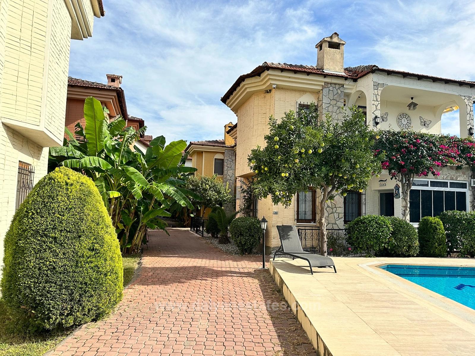 Vor dieser gepflegten Anlage mit wenigen freistehenden Villen befindet sich ein 40 m² großer Gemeinschaftspool. Der Poolbereich ist von Gärten mit tropischen Pflanzen umgeben, die jeder Villa eine großzügige, grüne und einladende Atmosphäre verleihen. Die kompakte, aber sorgfältig geplante Grundstücksstruktur bietet ein ausgewogenes Verhältnis zwischen Gemeinschaftsgefühl und Privatsphäre. Beim Betreten der Villa empfängt Sie eine helle und einladende Eingangshalle. Von hier aus gelangen Sie fließend in das Herzstück des Hauses: den offenen Wohnbereich und die kürzlich renovierte, moderne Küche. Direkt neben der Küche befindet sich eine sonnige Terrasse. Der Essbereich im Freien lädt zum Sonnenbaden, Entspannen oder zu gemütlichen Gesprächen ein und macht das Leben im Freien zu einem natürlichen Bestandteil des Hauses. Der Wohnbereich ist in zwei separate Bereiche unterteilt: einen Ess- und Arbeitsbereich auf der einen Seite und ein geräumiges und komfortables Wohnzimmer auf der anderen. Im Erdgeschoss befindet sich außerdem ein praktisches Gäste-WC. Über die Treppe erreichen Sie die privaten Wohnbereiche im Obergeschoss. Das geräumige Hauptschlafzimmer an der Vorderseite des Hauses verfügt über einen schönen Balkon mit Blick auf das Grundstück und ist lichtdurchflutet. Zusätzlich gibt es zwei weitere große Doppelzimmer. Beide Wohneinheiten verfügen über eigene Balkone und bieten eine großzügige und ruhige Atmosphäre. Das Familienbadezimmer besticht durch ein stilvolles und funktionales Design mit Steindetails, das Funktionalität mit moderner Ästhetik verbindet. Die Villa Melody wird komplett möbliert zum Verkauf angeboten und ist bezugsfertig – die neuen Eigentümer erhalten einfach die Schlüssel. Dank ihrer zentralen Lage, der ruhigen Grundstücksgestaltung und der harmonisch abgestimmten Wohnräume ist diese Villa eine äußerst attraktive Option für alle, die ein dauerhaftes Zuhause, ein komfortables Ferienhaus oder eine lohnende Investition in Dalyan suchen.