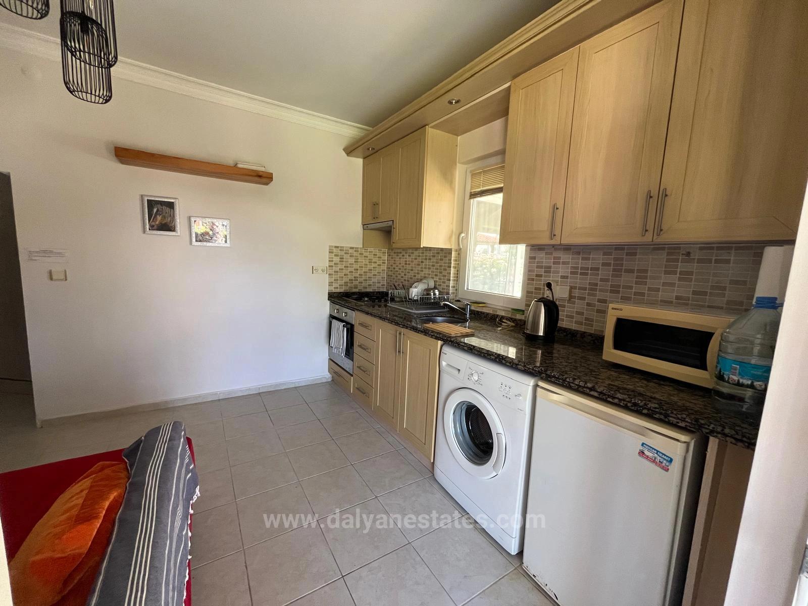 Diese charmante Erdgeschosswohnung, bekannt als Kelpie Apartment, befindet sich in der Metinler-Region von Dalyan, inmitten der üppigen und gepflegten Gärten der Anlage Mountain Breeze. Umgeben von der Ruhe der Natur, liegt dieses schöne Haus in unmittelbarer Nähe zum Dalyaner Samstagsmarkt und dem örtlichen Supermarkt und ist nur etwa 8 Gehminuten vom Zentrum Dalyans entfernt. Die Wohnung bietet hohen Komfort für Alltag und Urlaub und ist die ideale Wahl für alle, die Ruhe und Erholung suchen. Die Anlage umfasst insgesamt acht Apartments, vier in jedem der beiden Gebäude. Alle Apartments teilen sich einen Gemeinschaftsgarten mit weitläufigen, luftigen Rasenflächen und einem atemberaubenden, 40 m² großen, azurblauen Swimmingpool. Dank der großzügigen Gartenanlage herrscht eine ruhige und entspannende Atmosphäre, in der jeder seinen eigenen Rückzugsort findet. Die große, überdachte Terrasse des Apartments Kelpie ist fast wie ein zweiter Wohnraum. Sie bietet den perfekten Platz zum Essen im Freien, lässt morgens die sanfte Sonne herein und spendet nachmittags angenehmen Schatten, wodurch das Apartment in der Sommerhitze angenehm kühl bleibt. Durch das Sicherheitstor von der Terrasse gelangt man in einen hellen und luftigen Wohnbereich. Dank des Sicherheitstors kann man das Haus abschließen und beruhigt längere Zeit verreisen. Dieser offene Wohnbereich verfügt über eine lange, voll ausgestattete Küche mit Herd, Backofen und allen notwendigen Geräten. Reichlich Stauraum sorgt für Funktionalität und Ordnung. Der geräumige, an die Küche angrenzende Wohnbereich ist mit einer markanten, L-förmigen roten Sofagarnitur und einem TV-Bereich ausgestattet. Es bietet eine sehr einladende Atmosphäre zum Entspannen und Genießen des Tages. Der geräumige Flur, der vom Wohnzimmer aus zugänglich ist, wurde clever genutzt und bietet mit einem großen Einbauschrank zusätzlichen Stauraum. Diese funktionale Raumnutzung trägt zusätzlich zum aufgeräumten und luftigen Ambiente der Wohnung bei. Weiter in die Wohnung gelangen Sie in zwei geschmackvoll eingerichtete, geräumige Doppelzimmer. Beide Zimmer bieten eine komfortable und ruhige Atmosphäre, während das kürzlich renovierte Familienbad mit seinem modernen Design und der glänzenden silbernen Duschkabine besticht. Dieses charmante Apartment, das sich ideal als Ferienhaus für Familien oder als angenehmer Wohnraum in Dalyan eignet, steht inklusive aller Haushaltsgeräte und Möbel zum Verkauf. Das Kelpie Apartment kann derzeit besichtigt werden und kostet 125.000 £. Es wartet zu einem attraktiven Preis auf seine neuen Besitzer.