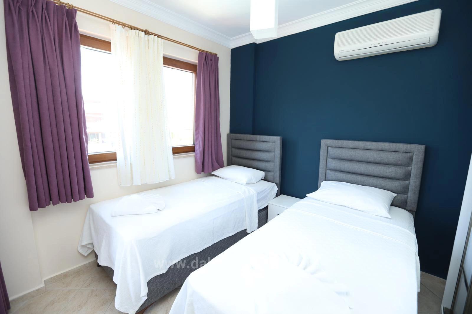 Diese Villa liegt im Stadtteil Gülpınar von Dalyan, nur 15 Gehminuten vom Zentrum entfernt, auf einem 566 m² großen Grundstück mit einer Fassade, die den weiten Karadağ-Plateau überblickt. Dank der zentralen Lage auf dem Grundstück genießen Sie einen großzügigen Vorgarten, einen Stellplatz und einen sonnigen Garten mit großem Swimmingpool. Die weitläufige Terrasse, die das Haus an drei Seiten umgibt, bietet Ihnen zu jeder Tageszeit Sonne und Schatten und einen herrlichen Ausblick. Die Beschattung auf allen Seiten maximiert die Nutzbarkeit und sorgt für ein angenehmes Raumklima. Beim Betreten des Hauses gelangen Sie in ein praktisches Gäste-WC und einen Abstellraum. Anschließend betreten Sie den geräumigen Wohnbereich mit offenem Kamin; ein helles Wohnzimmer mit zwei Ausgängen zum vorderen Balkon. Die voll ausgestattete Küche mit allen Geräten bietet Blick auf den Garten mit Pool. Der Essbereich im hinteren Bereich öffnet sich zu einer großen Terrasse und zum Pool hin und verbindet so auf harmonische Weise Innen- und Außenbereich. Über die geschwungene Treppe gelangen Sie in den ersten Stock, wo Sie zwei geräumige Doppelzimmer (derzeit als Zweibettzimmer genutzt) mit Zugang zum hinteren Balkon und Blick auf den Pool erwarten. Das Hauptschlafzimmer verfügt über ein eigenes Badezimmer und einen eigenen Balkon. Das Familienbad besticht durch seine moderne Ausstattung und sein überraschendes Design. Das Anwesen ist geschmackvoll und stilvoll eingerichtet und dekoriert, sodass der besondere Charakter des Hauses in allen Räumen spürbar ist. Es wird komplett möbliert verkauft, inklusive aller Haushaltsgeräte und Klimaanlagen in jedem Zimmer. Es ist ein Haus, das man gesehen haben muss, sei es, um die farbenfrohe und fröhliche Dekoration zu bewundern oder sich davon inspirieren zu lassen. Preis: 365.000 GBP Immobiliengenehmigung Nr.: 4800246