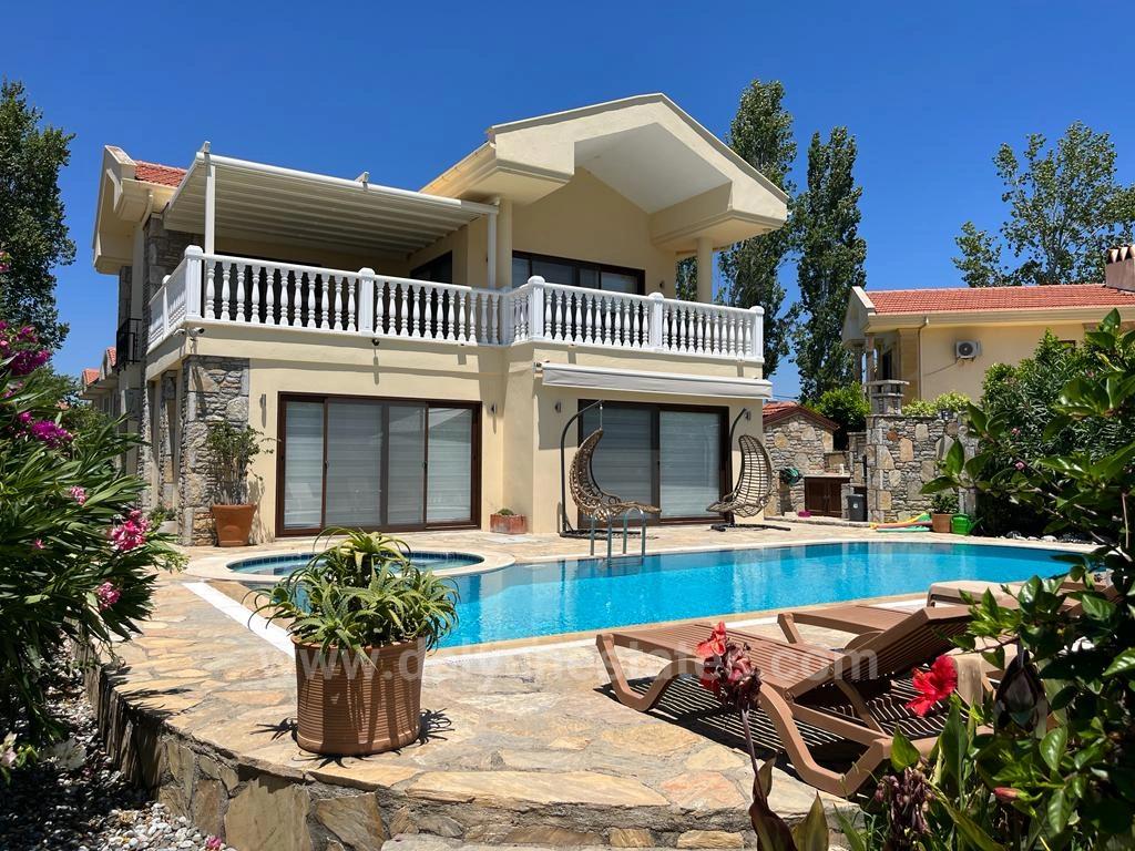 Auf einem großzügigen 800 m² großen Grundstück inmitten der imposanten Bergkulisse der ruhigen und naturbelassenen Region Arıkbaşı in Dalyan bietet diese exklusive Villa mit vier Schlafzimmern eine wahrhaft seltene Wohnmöglichkeit. Mit ihrem üppigen Garten, den weitläufigen Außenbereichen und dem ungestörten Panoramablick ist die Villa Cappuccino ein privates Familienhaus, das für alle geschaffen wurde, die Ruhe und Komfort suchen. Das Zentrum von Dalyan ist in einem angenehmen 20-minütigen Spaziergang oder mit dem Fahrrad in nur fünf Minuten erreichbar – die Lage ist ideal für alle, die im Einklang mit der Natur leben und dennoch zentral wohnen möchten. Die Villa wurde nie vermietet, sorgfältig erhalten und ausschließlich für das Familienleben genutzt.