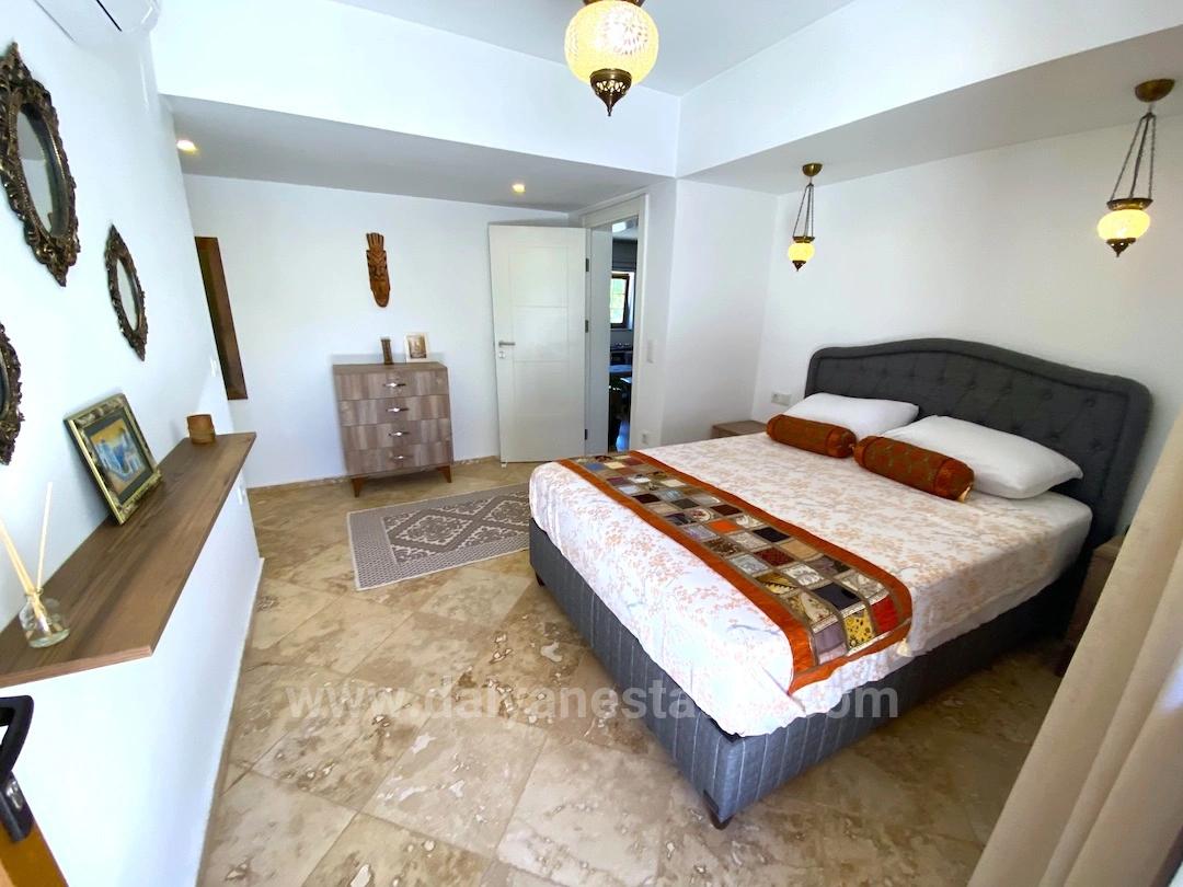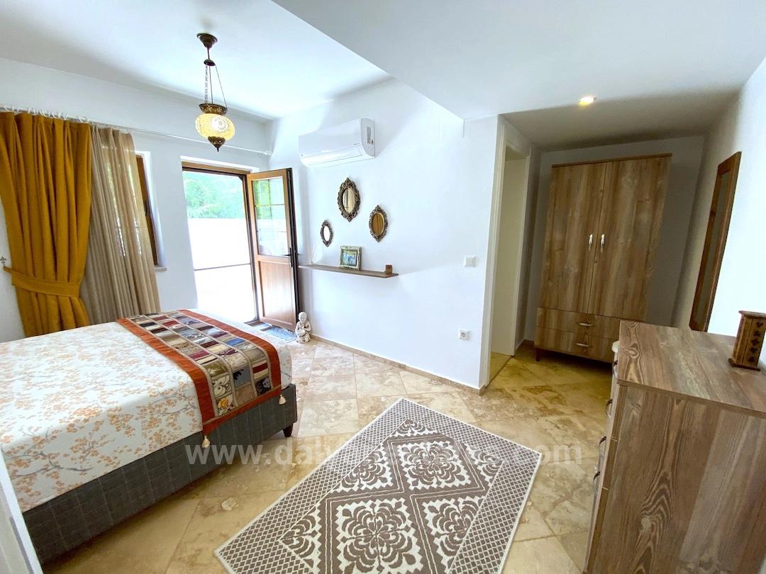 Located right on the coast of Dalyan, in the peaceful atmosphere of Okçular Village, Villa Splendid is more than just a house; with its architecture, scale, and the variety of lifestyles it offers, it is truly a fairytale land. This highly unique property, unparalleled in the region, creates a truly rare and exciting opportunity by offering two separate living spaces together, rather than settling for a single structure. The main building, often referred to as a "fairytale house," inspires admiration at first glance with its striking and impressive architecture; It is almost impossible to find a house of this scale and character anywhere else around Dalyan. Located in a quiet spot away from the main Ring Road, the property offers easy access to both Dalyan and Ortaca. Surrounded by mountain views, this exclusive location offers the privilege of being away from the crowds but close to the center. Dalyan center can be reached in about thirty minutes on foot or just a short five-minute drive. The nearby market for daily necessities is only a few minutes away, while Günlük Restaurant, a popular spot in the area, located directly across the road, brings the social life right to your doorstep. Both villas have recently been completely renovated to the highest standards and are situated within a 1,150 m² walled, highly private and secure garden. The garden features various fruit trees, an elegant fountain, and extensive lawns. In the center of the garden is an impressive 50 m² swimming pool, an outdoor bar, a playground, and a specially built barbecue, providing the perfect setting for entertaining guests and enjoying long summer evenings. At the end of a long, private entrance hall, accessed via a remote-controlled electronic gate, is the garage and workshop area, while the entire property is protected by security cameras. The interiors of the main villa are just as impressive as the exteriors. The spacious and airy living room on the ground floor is striking with its high ceilings and impressive volume. The modern kitchen, located next to the living room, and the adjacent dining room offer an ideal flow for both daily life and gatherings. The unique and opulent sofa sets complement the grandeur of the living room, adding timeless elegance to the space. On the ground floor, there is also a double bedroom with an en-suite bathroom and independent entrance, a spacious hallway, and a guest WC. Up the winding staircase, you are greeted by a mezzanine overlooking the living room. This floor contains a total of four bedrooms, one of which is currently used as the upper living room, and a master bathroom with both a shower and a bathtub. All the rooms are spacious double rooms, three of which open onto a balcony. The very large master bedroom offers a privileged living space with its own bathroom. The attic, reached by going up one more floor, is currently used as a library and study area, and its size allows it to easily be converted into a sixth bedroom. The main villa has a capacity to comfortably accommodate twelve people. Located within the garden of the main villa and included in the sale, the second structure is a detached bungalow reflecting traditional Turkish architecture. This second house is completed with two spacious double bedrooms, each with an en-suite bathroom, a spacious open-plan living-kitchen-dining area, a separate laundry/utility room, a large veranda, and a roof terrace. With its own garden and independent entrance, this structure offers excellent flexibility as a guest house, additional living space, or a separate rental property. data-end="4205">Villa Splendid, with its fairytale architecture, two separate living areas, spacious gardens, and advantageous location, offers a unique living experience for both large families and discerning buyers seeking versatile use. This property is not just a house; it is a rare living scene, ready for new memories, containing many stories within it.