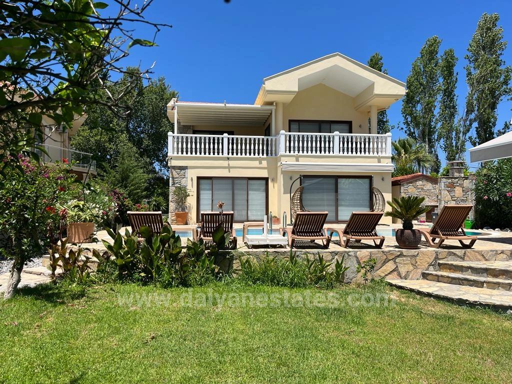 Located on an extra-large 800 m² plot surrounded by impressive mountain silhouettes in the tranquil and natural environment of the Arıkbaşı region of Dalyan, this exclusive four-bedroom villa offers a truly rare living opportunity. With its lush garden, spacious outdoor areas and uninterrupted views, Villa Cappuccino is a private family home designed for those seeking both tranquility and comfort. Accessible to the center of Dalyan with a pleasant twenty-minute walk or just a five-minute bike ride, this location is ideal for those who want to live in harmony with nature while remaining close to the center. Never rented out, the villa has been meticulously preserved and used exclusively for family life.