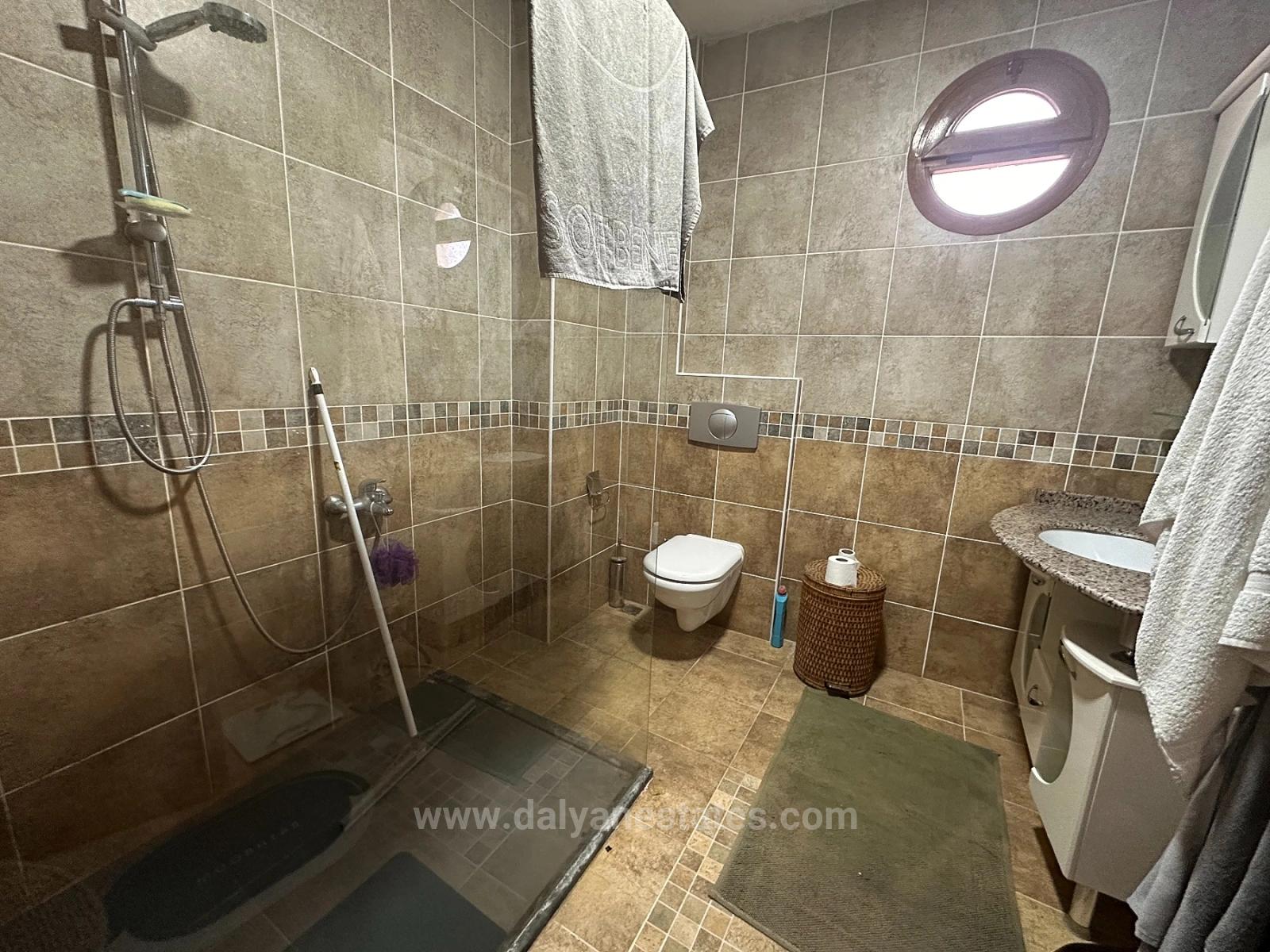 Located just steps from the vibrant center of Dalyan, yet situated on a remarkably quiet, green back street, Villa Gold stands out with its rare balance of accessibility and tranquility. Reflecting the classic charm of Mediterranean architecture from the moment it appears, with its natural stone-clad facade and mature landscaping, the villa creates a private living space offering a sense of privacy and serenity — a sanctuary away from the city, despite being a short walk from cafes, shops, and the riverbank. Set within a meticulously landscaped 500 m² garden, the property is surrounded by lush vegetation and sunny outdoor living spaces. At its center is an inviting 40 m² swimming pool, enriched by a traditional stone barbecue that complements Dalyan's outdoor living culture. The spacious shaded front terrace offers the perfect setting for al fresco meals, peaceful afternoons, and long summer evenings against the backdrop of lush greenery. The moment you step inside, the warmth and quality of home are immediately apparent. The spacious solid wood kitchen, complete with gleaming black granite countertops and a convenient breakfast bar, forms the heart of the home — both aesthetic and functional. The ground floor is divided into two complementary living areas: an intimate winter seating area with a characterful open fireplace and a bright, breezy summer lounge. This floor also features a stylish guest bathroom, ample storage space, and an elegant double bedroom ideal for those who don't want to use stairs. The feeling of spaciousness continues upstairs. The hallway, cleverly designed with storage solutions, makes the house highly functional for both family life and holiday use. The impressively large master suite offers comfortable privacy with a dressing room and private shower bathroom. Two spacious double bedrooms share a stylish family bathroom with a corner Jacuzzi bathtub, adding an elegant layer of comfort to the living area. One of Villa Gold's most captivating features is its spacious first-floor balcony. From here, you can enjoy mountain views stretching over the green landscape of Dalyan; it offers a unique corner for watching the sunset, relaxing in the cool evening air, or sipping your morning coffee outdoors. Offered for sale fully furnished, Villa Gold is located in one of Dalyan's most sought-after central locations; it is a perfect option for permanent living, an exclusive holiday home, or a high-quality rental investment.