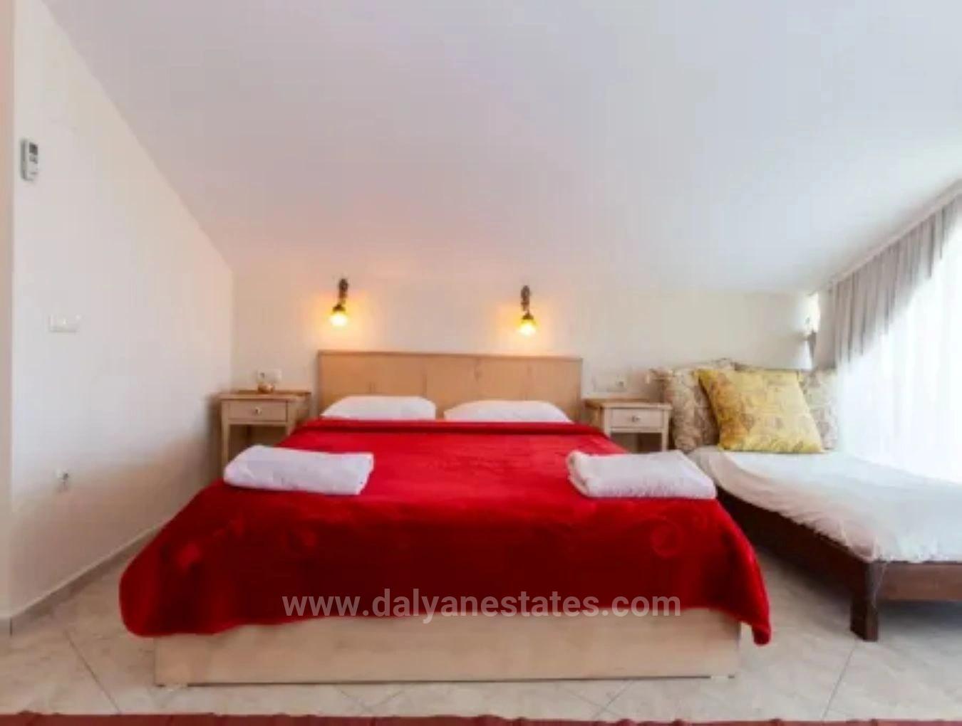 Вилла Ирем расположена на вершине холма в тихой, окруженной горами атмосфере деревни Гёкбель. Благодаря своему возвышенному положению, летом здесь прохладнее, а после обеда дует освежающий горный бриз. Эта очаровательная вилла, тщательно отреставрированная, элегантно сочетает традиционные турецкие архитектурные элементы с современными деталями. Построенная из каппадокийского камня, вилла обладает естественной теплоизоляцией; летом внутри прохладно, а зимой тепло. Полностью меблированная и оборудованная кондиционерами, вилла Ирем спроектирована для комфортного проживания круглый год. На верхнем этаже вас встретит уютная гостиная с большим каменным камином, двумя удобными креслами и ЖК-телевизором. Эта открытая гостиная плавно переходит в обеденный стол и хорошо оборудованную современную кухню. Каждая из двух просторных спален на первом этаже имеет собственную ванную комнату и идеально подходит для комфортного проживания гостей или семьи. На втором этаже расположена светлая и просторная главная спальня. В просторной ванной комнате есть угловая ванна-джакузи и душевая зона. Окна от пола до потолка выходят на частную террасу с потрясающим видом на дельту, создавая уникальную атмосферу, погруженную в природу. Четвертая спальня — это одноместная спальня, которую также можно использовать как рабочее место; она обставлена диваном-кроватью, письменным столом, книжным шкафом и телевизором. Благодаря двусторонним раздвижным стеклянным дверям в нее попадает много дневного света. Вилла Ирем располагает парковкой и ландшафтным садом. Сад переходит в небольшой сад с недавно посаженными оливковыми и апельсиновыми деревьями. На террасе есть барбекю, деревянный стол и стулья, а оттуда можно выйти на веранду, обставленную шезлонгами. Веранда выходит к экологически чистому бассейну-инфинити площадью 40 м² с морской водой и изогнутой зоной отдыха, предлагающей уникальное место для релаксации с прекрасным видом. Цена: