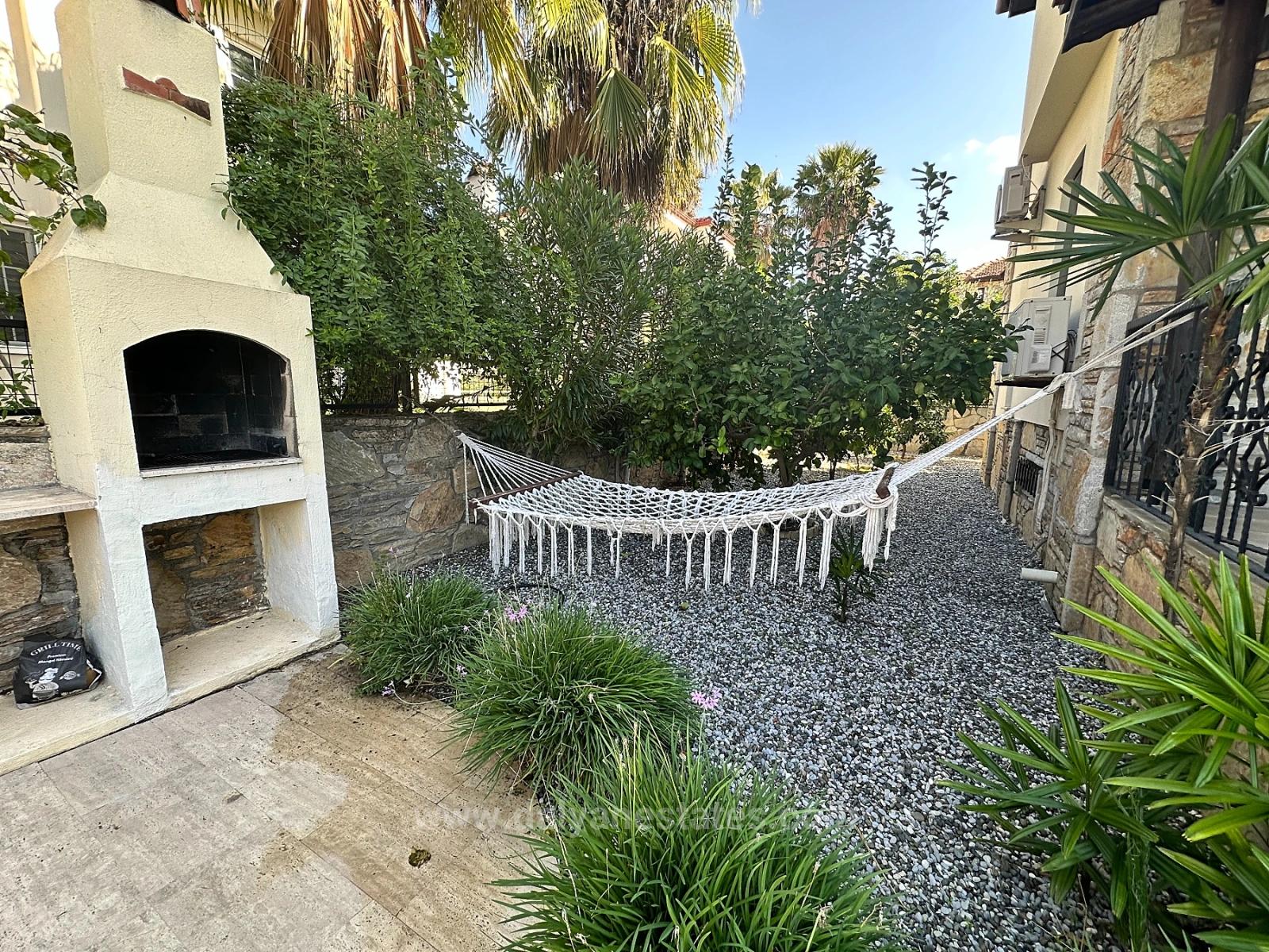 Внутренняя планировка функциональна и элегантна. На первом этаже расположена светлая гостиная открытой планировки с полностью оборудованной кухней, выходящей на садовую террасу, а также гостевой туалет. Внизу вы найдете спальню с камином, ванную комнату, прачечную и кладовую — идеальное место для семейных визитов или как отдельный гостевой номер. На верхнем этаже расположены три дополнительные спальни: главная спальня с собственной ванной комнатой, а две другие спальни делят просторную семейную ванную комнату. Просторная терраса с видом на бассейн и сады создает умиротворяющую атмосферу для отдыха. ... Этот дом — редкая возможность приобрести по-настоящему особенную недвижимость в Дальяне, как для постоянного проживания, так и в качестве инвестиции с высоким арендным потенциалом.