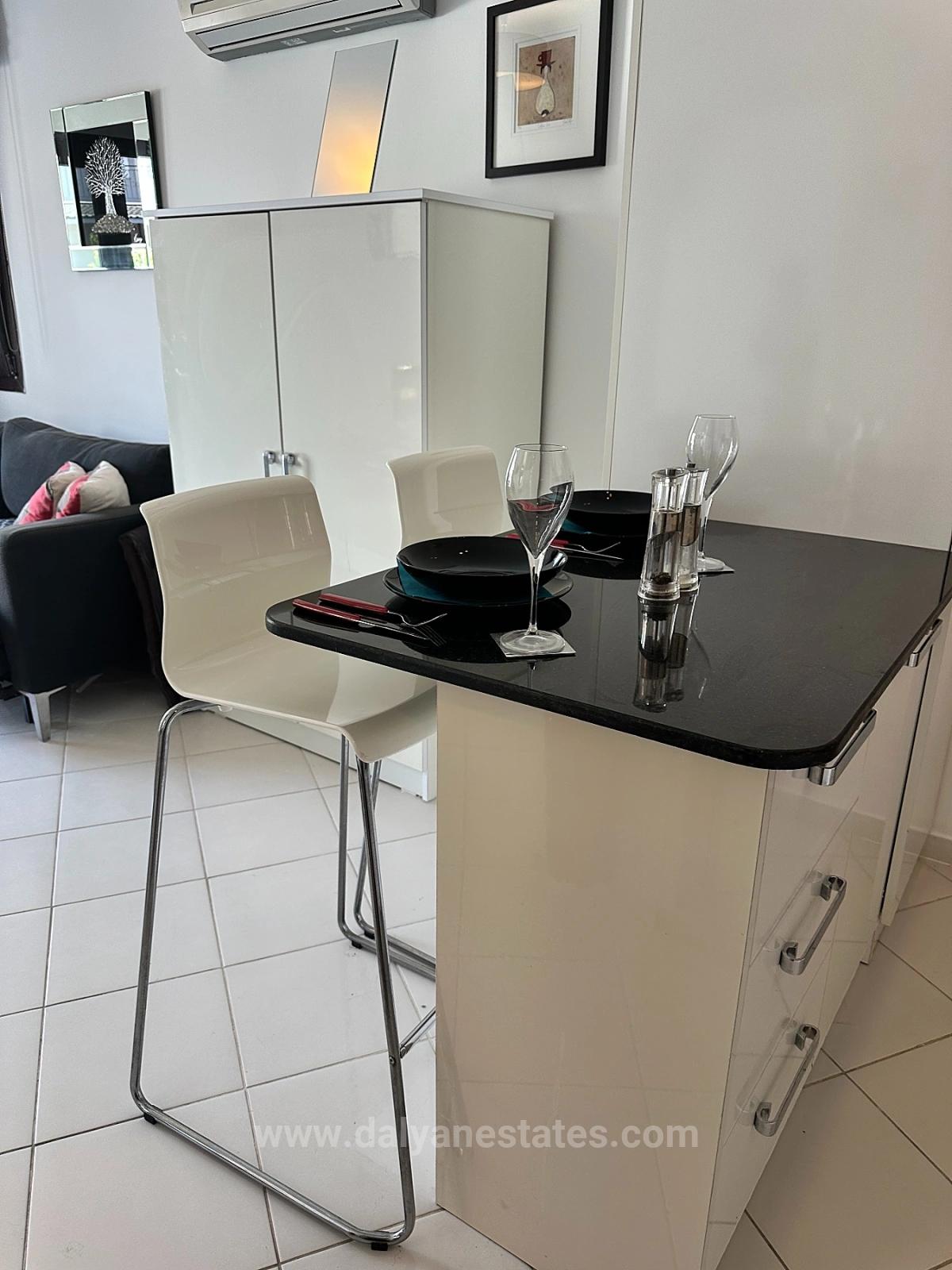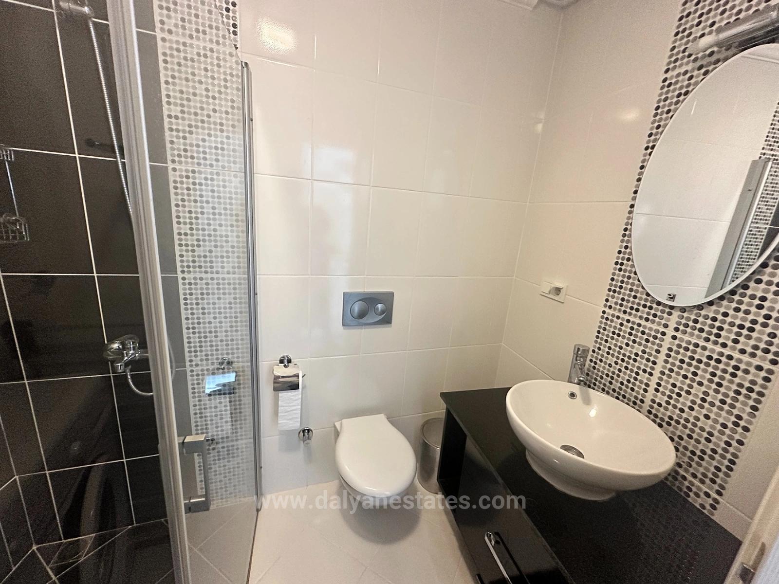 Расположенная в эксклюзивном и престижном комплексе всего из 10 апартаментов, эта выдающаяся недвижимость доступна по эстетичному деревянному мосту, и вы попадаете внутрь через собственный отдельный вход. Бассейн, являющийся центральным элементом комплекса, выделяется своими элегантными зонами отдыха в форме лилий, а просторная общая терраса для принятия солнечных ванн вокруг него предлагает приятные моменты в течение всего дня. Просторная и приватная терраса апартаментов выходит прямо к бассейну, создавая уникальное жилое пространство, где вы можете выпить утренний кофе в тишине воды или насладиться коктейлем на фоне заката вечером. При входе в квартиру сразу ощущается простор и современная элегантность. Большая спальня с двуспальной кроватью, залитая естественным светом, предлагает комфорт и роскошь благодаря встроенным шкафам и прямому выходу на террасу и к бассейну. Стильная ванная комната с душем, выполненная в современном стиле, отделана высококачественными материалами. Открытая планировка гостиной и кухни сочетает в себе эстетику и функциональность, а полностью оборудованная современная кухня создает идеальную обстановку для приятных трапез и встреч. Эта эксклюзивная квартира, предлагаемая к продаже полностью меблированной, готова к немедленному заселению без каких-либо дополнительных затрат. Если вы хотите незабываемый дом для отдыха или эксклюзивное жилое пространство в самом сердце Дальяна, где вы сможете наслаждаться жизнью круглый год, эта недвижимость представляет собой редкую возможность благодаря своему местоположению и качеству жизни, которое она предлагает.