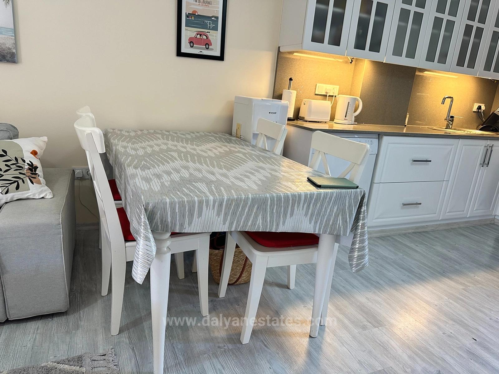 Как только вы переступите порог виллы, вас встретит теплое и уютное ощущение дома. Светлый и просторный первый этаж плавно переходит из гостиной в столовую, а оттуда — в полностью оборудованную кухню открытой планировки. Кухня выходит прямо во двор, а под лестницей находится data-end="1348">зона, которая также служит туалетом и прачечной, что очень удобно в повседневной жизни.